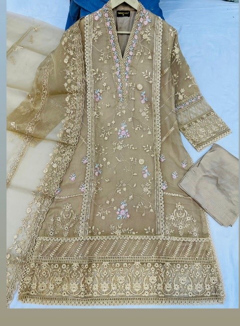 Be the first to review “3pc khadi net shirt dupatta & silk pants”